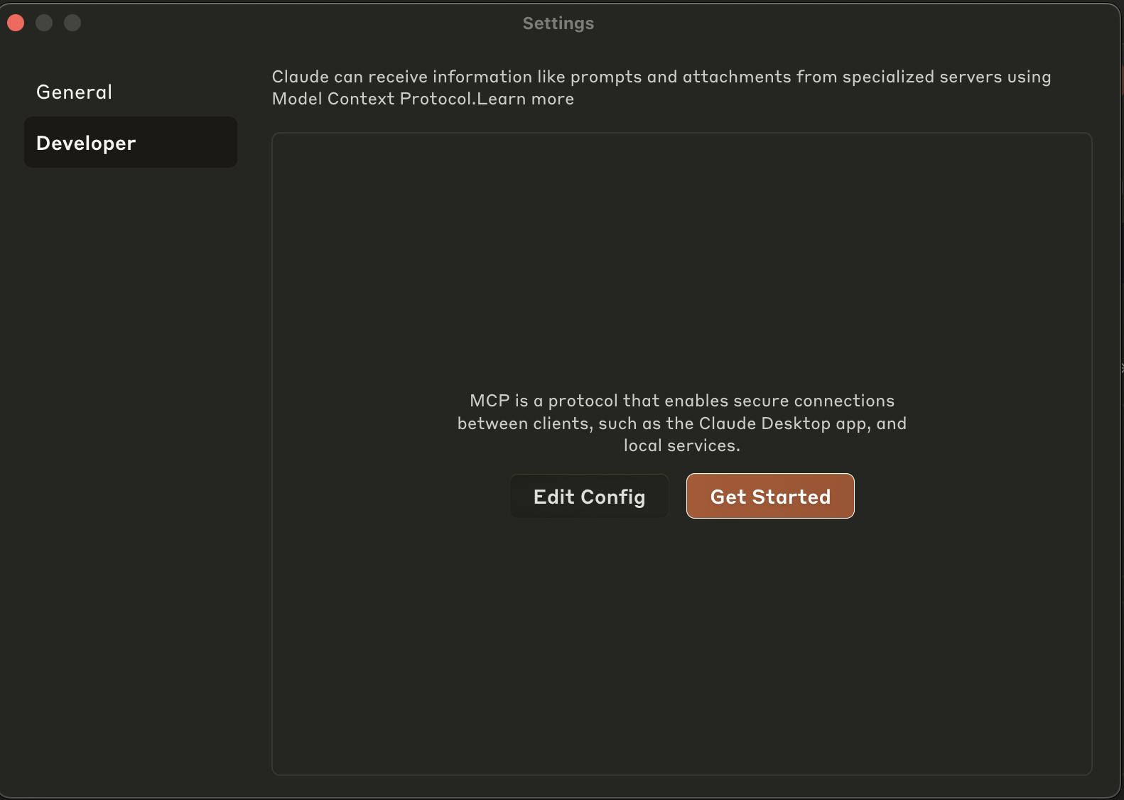 Edit Config. - Open the Claude Desktop App configuration file located at: