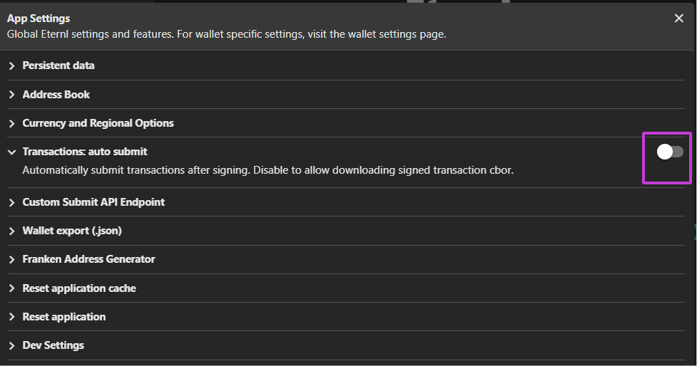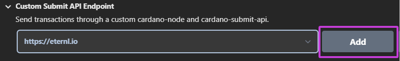 2. Configure Eternl to Use Maestro’s Turbo Submit Endpoint