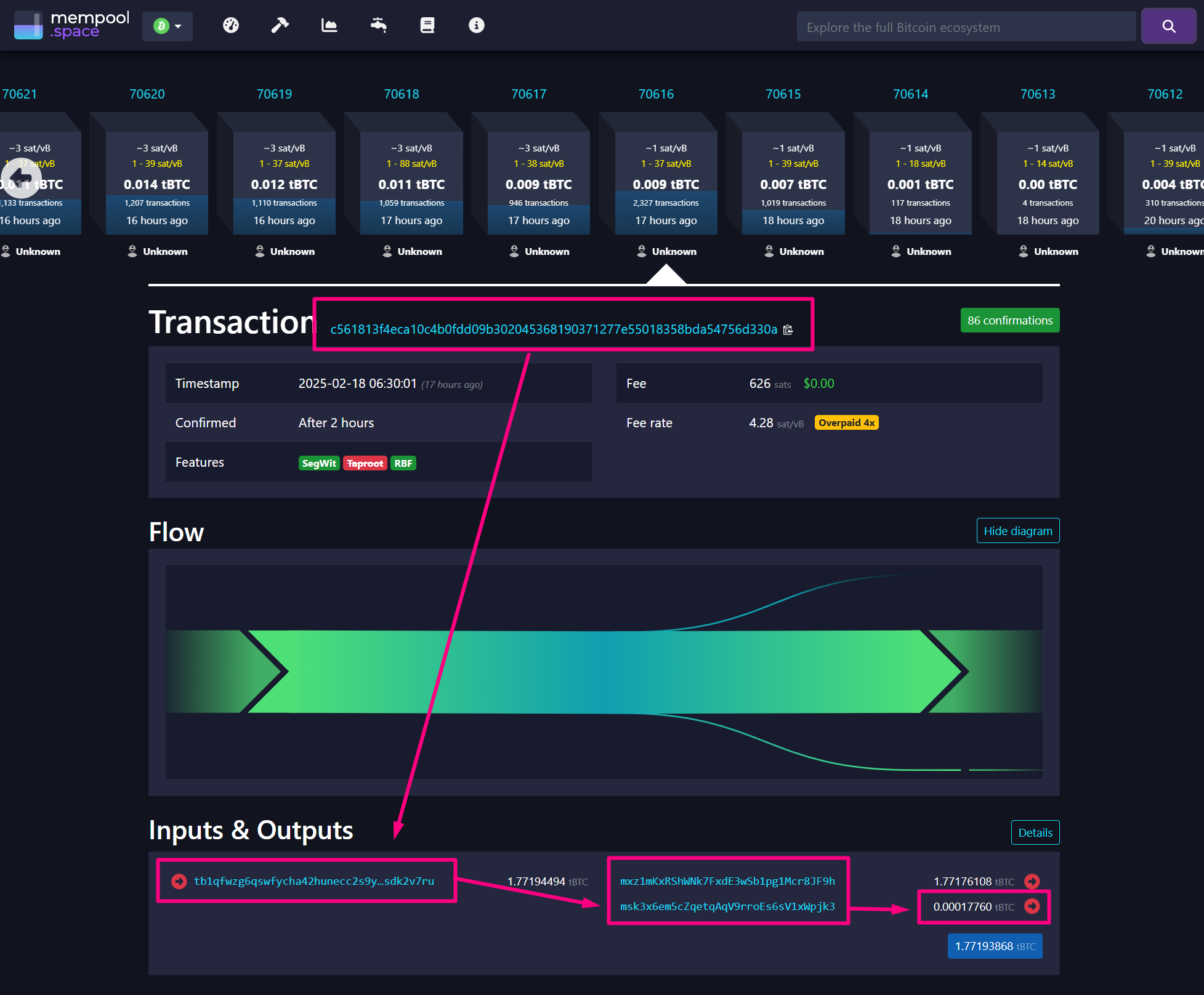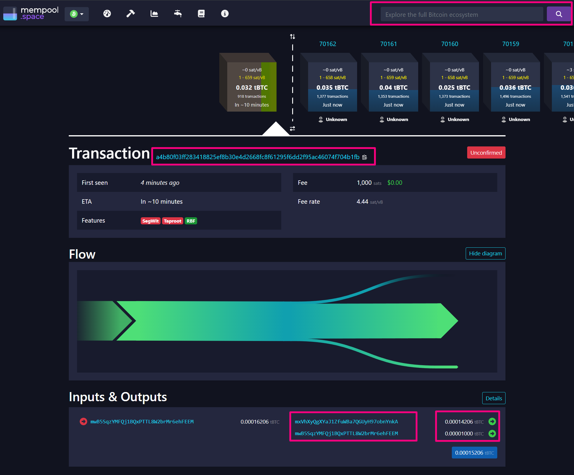 Use Maestro Bitcoin Explorer to monitor the Transaction