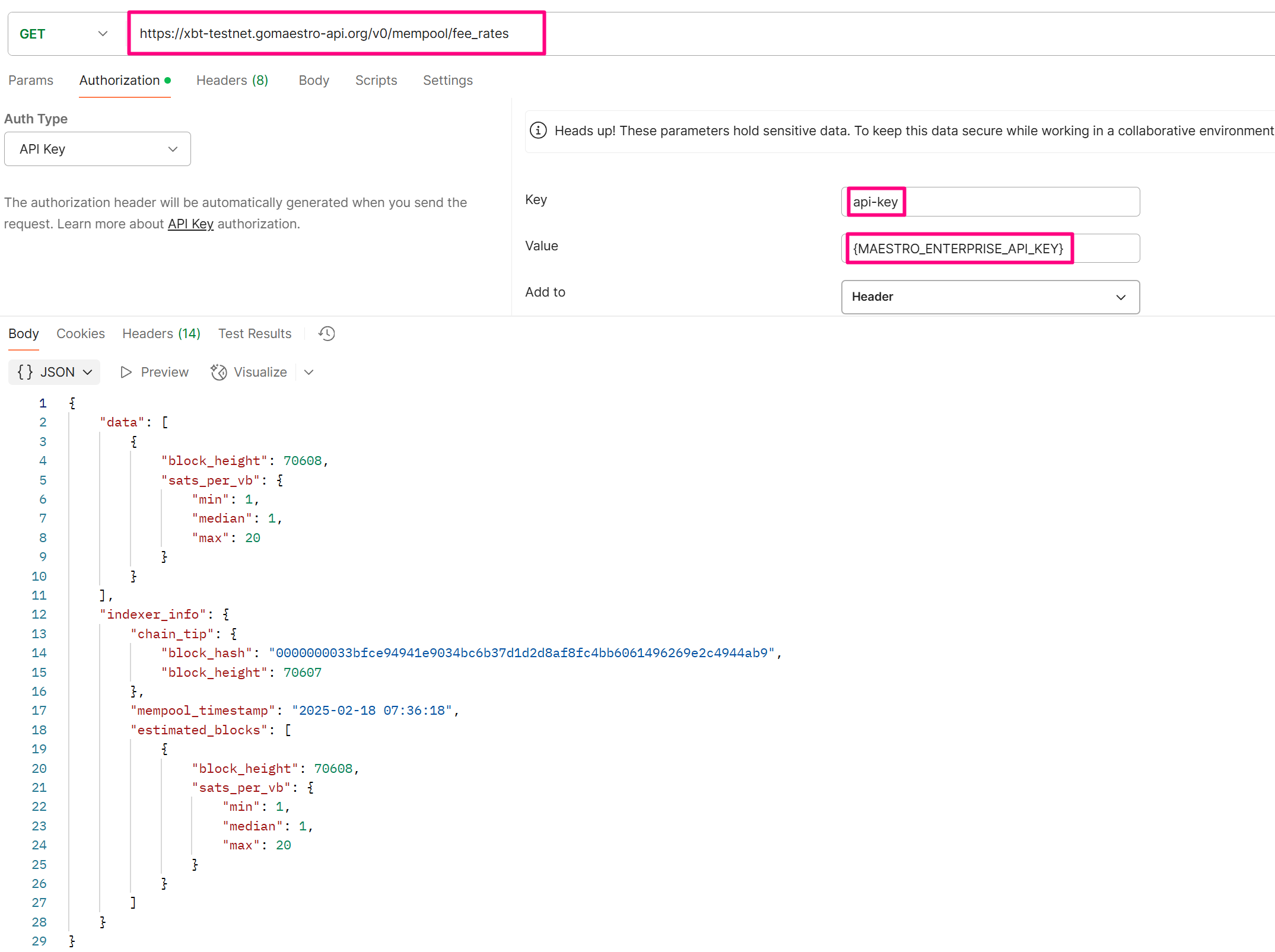 accordingly. See Mempool Block Fee Rates Maestro API Documentation